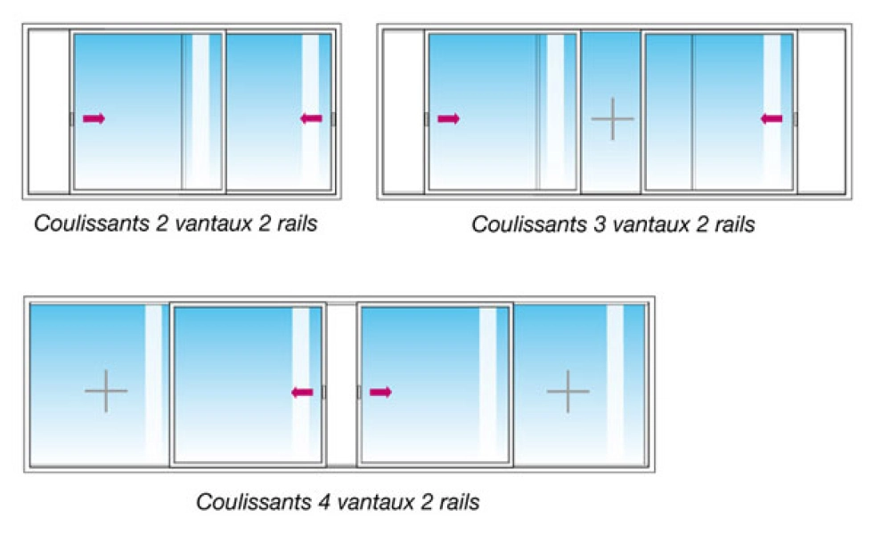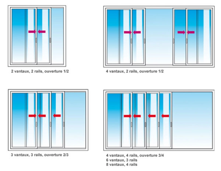 • Coulissants sur 1, 2, 3 ou 4 rails,